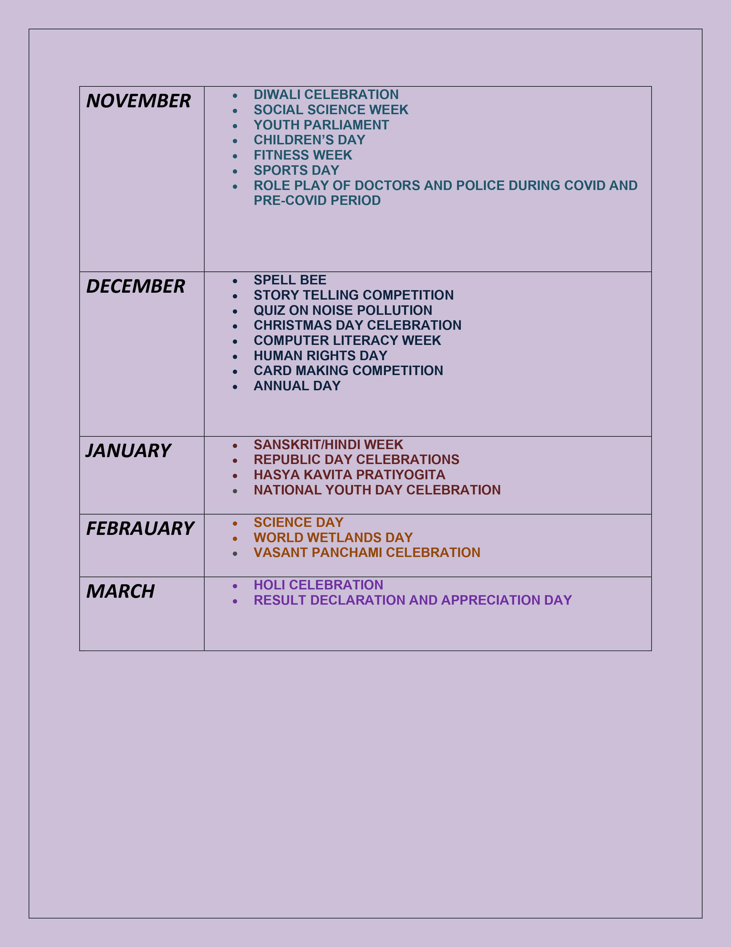 ACTIVITY CALENDAR