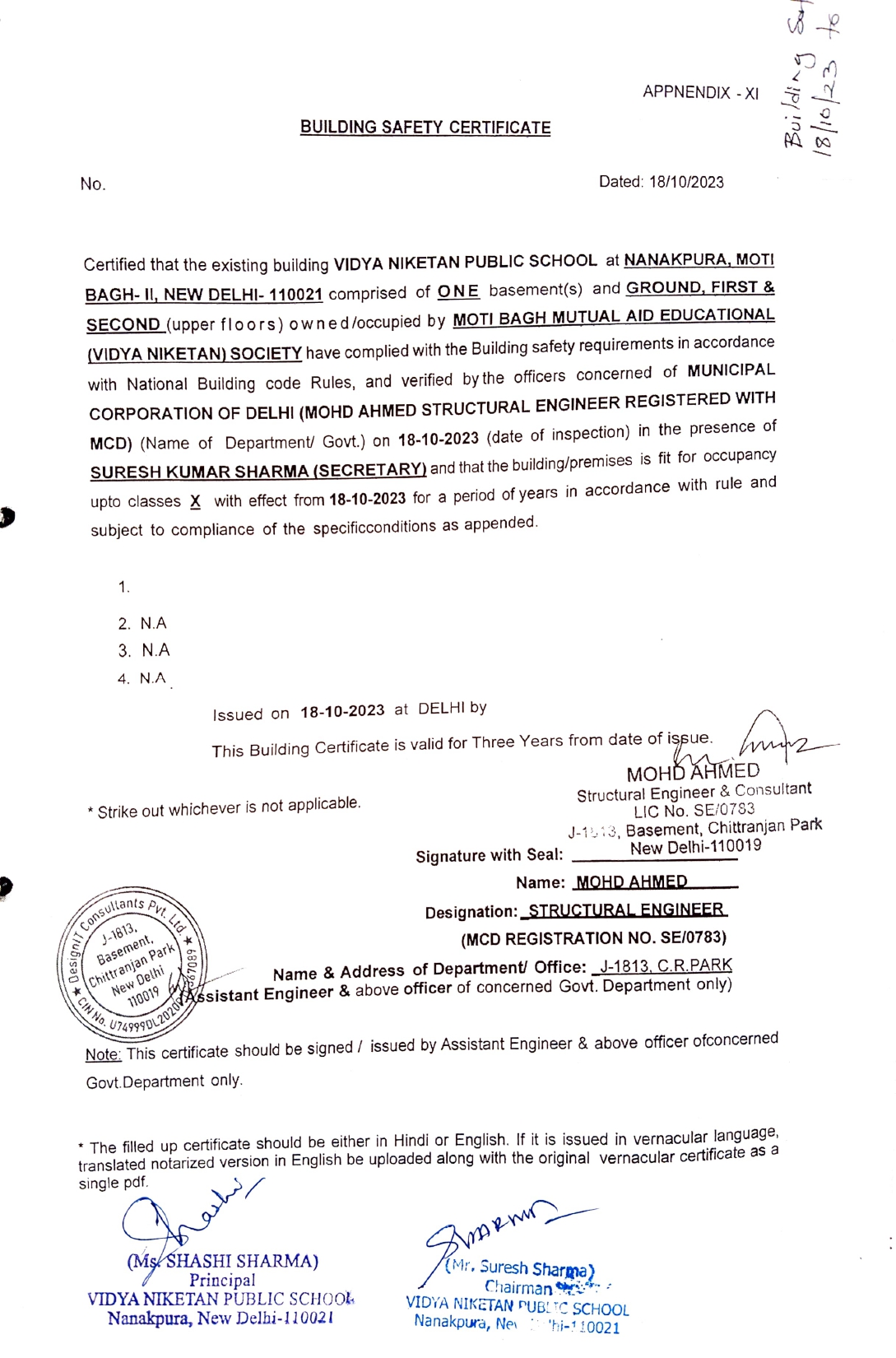 BUILDING CERTIFICATE